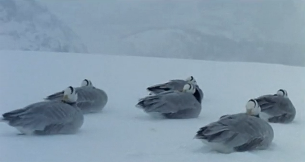 Как видно, комментарии тут излишни, но всего через три года на экраны вышел фильм «Птицы 2. Путешествие на край света», авторы которого (к слову, совершенно другая команда) решили, что комментарии зрителю все же необходимы.
