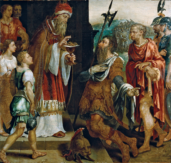 ![Мельхиседек благословляет Авраама. Мозаика в соборе Сан Марко, Венеция. 13 век. В книге Бытия это описано так: «Когда он возвращался после поражения Кедорлаомера и царей, бывших с ним, царь Содомский вышел ему навстречу в долину Шаве, что ныне долина царская; и Мелхиседек, царь Салимский, вынес хлеб и вино, — он был священник Бога Всевышнего, — и благословил его, и сказал: благословен Аврам от Бога Всевышнего, Владыки неба и земли; и благословен Бог Всевышний, Который предал врагов твоих в руки твои. [Аврам] дал ему десятую часть из всего»](/UserFiles/Image/DavydovO/Tolstoi/Melchizedek_Abraham1.jpg)