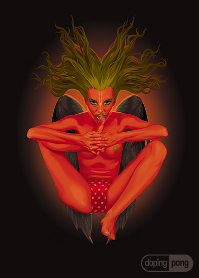 На самом деле все, что я хочу – сочинять поэтические тексты и идиллические картинки к ним. Но для того, чтобы делать подобное, мне приходится придумывать очевидные образы и невероятные сюжеты, делая из них сумасшедшие комиксы и рекламные темы для массмедиа. Потому что меньшинство может выжить в данной экономической и природной ситуации исключительно за счет безумного большинства. Реклама таких фирм, как DIESEL сегодня что-то вроде Иисуса Христа, дающего Новый Завет. Стилисты и модельеры, подобные Вальтеру ван Берендоку, достойно сменили на посту служителей прекрасного Вермеера ван Делфтского. Они создатели, а не постмодернисты. DOPING-PONG ближе к GOLDIE и BJORK, чем к профессиональным комиксмейкерам, погруженным в стандарты СПАУНА, или чем к т.н. невской субкультуре типа речников. DP уникальный HI-TECH дуэт сочинителя и художника с неудавшимися судьбами драгдиллера и фальшивомонетчика. В принципе, то, что мы делаем, только весьма условно, можно называть комиксом. Нашему искусству дадут название критики следующей эры, до которой остались считанные дни. Как я уже сказал сситуация с DP-comix в России похожа на ситуацию с кино до того, как появятся первые синематеки. Нам не у кого учиться, мы сами воплощаем высшее образование для тех, кто последует за нами.