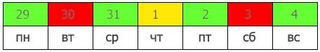 Календарь перемен предназначен для планирования деловой, творческой и физической активности человека с целью минимизации ущерба своему здоровью и максимизации прибылей. На зеленом поле календаря преимущественно удаются деловые начинания, на красном - решение творческих задач. «Желтые» дни - отличаются неустойчивым переходным характером. Подробнее о Календаре Перемен читайте здесь.