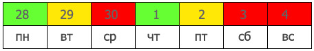 Календарь перемен предназначен для планирования деловой, творческой и физической активности человека с целью минимизации ущерба своему здоровью и максимизации прибылей. На зеленом поле календаря преимущественно удаются деловые начинания, на красном - решение творческих задач. «Желтые» дни отличаются неустойчивым переходным характером. Подробнее о Календаре Перемен читайте здесь.