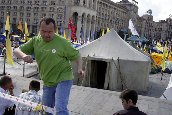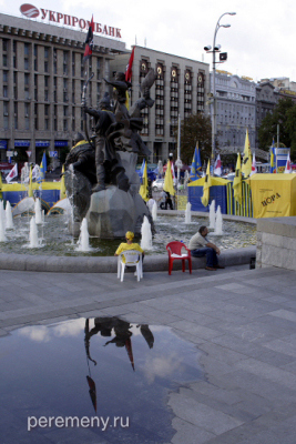 Горстка сторонников Тимошенко разбила пару палаток на Майдане. Другая горстка разбила пару палаток в парке рядом со зданием Парламента. А Киев продолжал жить своей обычной жизнью. Горожане, не связанные с политикой (к примеру, наша квартирная хозяйка), жарили по вечерам сырники, смотрели «Поле чудес» по телевизору и говорили в ответ на вопросы про революцию: «Да достали они там со своими революциями! Разобраться никак не могут… Вот где они уже! Мы просто внимания уже на их междусобойчики не обращаем»…