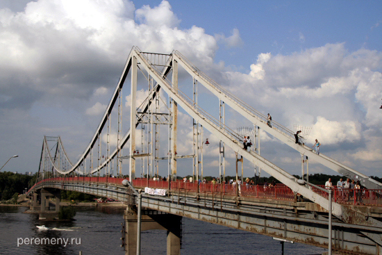 Чтобы увидеть Киев по-настоящему, нужно, как минимум, спровоцировать какой-то внутренний взрыв. Например, взобравшись на сваи Паркового пешеходного моста, на самый верх и выпив там залпом пол бутылки чего-нибудь крепкого. Иначе пиши пропало… все обойдется простыми путеводительскими штампами типа: «вы побываете в историческом месте Майдан Незалежности и отведаете вкуснейшего украинского пива «Оболонь Бiлое»…