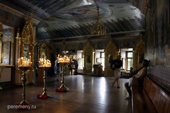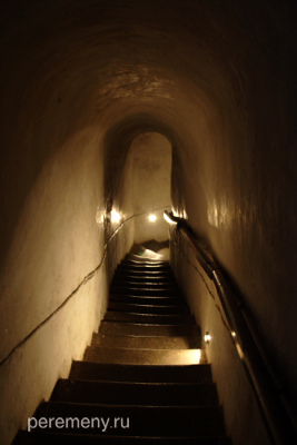 Сам вход в пещеры выглядит как длинная почти винтовая лестница-тонель под землю. А пещеры – это узкие белые извилистые коридоры, освещенные тусклым светом свечей. В нишах по стенам коридоров – мощи. Нетленные, но давно почерневшие святые лежат в прозрачных гробах. То, что они почернели, заметно, например, по черно-коричневой кисти Ильи Муромца, которая торчит из-под вышитого крестами парчового покрывала.