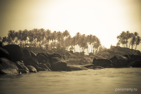 «Настоящее», в принципе, дело вкуса. Вкуса счастья, который для каждого «человеко-прототипа» свой. И все же, мне кажется, в глубине души каждый знает, какое оно – большое, чистое и ошеломляющее, «настоящее настоящее», и в Гоа его нет, как молока в старых кокосах. Вот и весь сказ. А energy тут хорошая, может с тех еще прошедших «настоящих» времен: свежий ветер, крупные темные камни на берегу, и море зовет куда-то вдаль всех без исключения: даже тех, кто целенаправленно рыщет по пляжу в поисках reasonably priced королевских креветок, и тех, кто варит яйца в кастрюле кипятильником, принципиально не желая платить по пять рупий за штуку.
