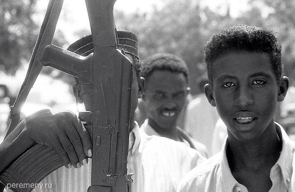 Проезжая по прохладным горам Эфиопии, мы познакомились с человеком по имени Сиад, который в свое время учился в аспирантуре в Пятигорске. Сиад — не исключение. В Африке живут тысячи людей, отучившихся в Харькове, Воронеже или Твери… Когда бы не они, путешествовать по черному континенту было бы гораздо сложнее. Подвозя нас из Хэрэра в Дыре-Дауа, Сиад рассказал (беседовали мы, кстати, по-русски), что скоро собирается домой, в Могадишо, забирать оттуда семью. Сомали уже лет 10 находится в состоянии войны. Государство раскололось на десяток бандитских княжеств, голодных и вооруженных. Дороги стоят перекрытые. Бесперебойно работают, по словам Сиада, лишь рынки оружия.