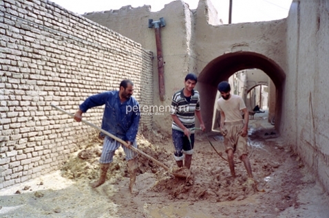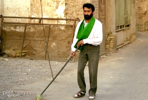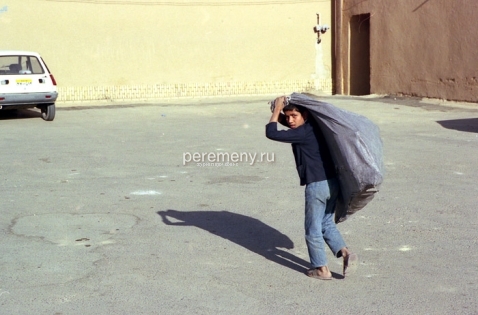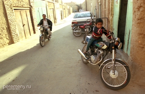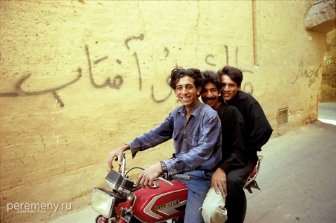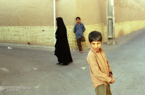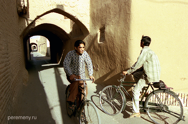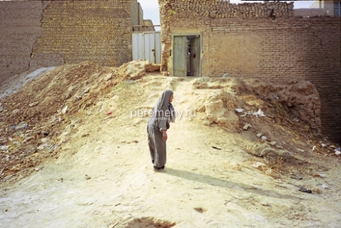 До тупика остается каких-то три метра, когда слева в стене я вижу приоткрытую маленькую калитку. Там, за этой дверцей, в солнечном дворе сидит пожилой перс на потертом ковре. Он смотрит мне прямо в глаза — будто знал, что я сейчас загляну. Седая щетина, серый пиджак, смуглое морщинистое лицо, черные усы, блестящие глаза… Перс что-то говорит мне на фарси, делает рукой подзывающий жест (на Востоке ладонь при таком жесте смотрит вниз, а не вверх, как у нас). Вокруг — осыпавшиеся неровные стены и пустые обрушившиеся комнаты с кучами камней и глины. Двор давно уже необитаем.